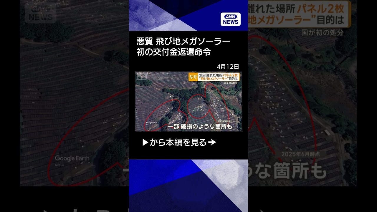 #ANNnews 【ニュース】電力価格が上がる“飛び地メガソーラー”に処分 国が初の交付金返還命令#shorts