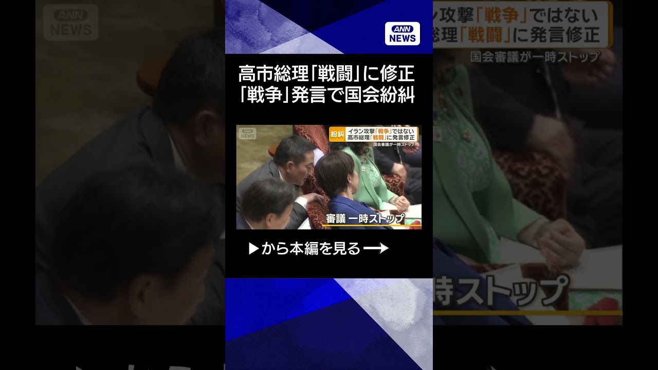 #ANNnews 【ニュース】高市総理「戦闘」に修正 イラン攻撃「戦争」発言で回答できず国会紛糾 #shorts