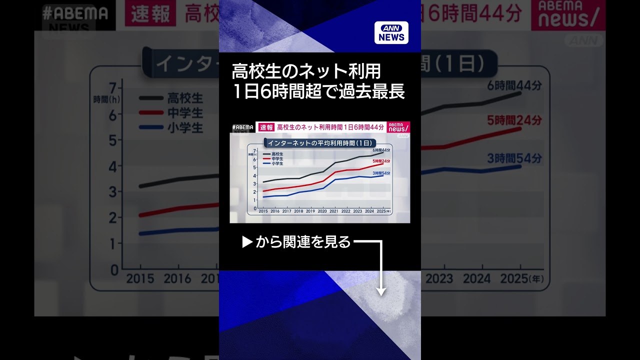 #ANNnews 【ニュース】高校生のネット利用時間1日6時間44分 4人に1人が睡眠不足など経験 こども家庭庁(2026年2月26日) #shorts