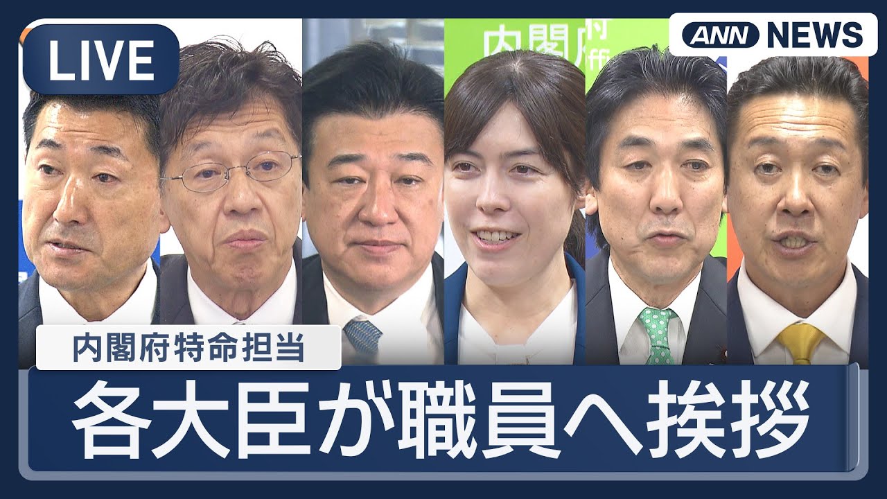 【ライブ】小野田紀美氏、松本尚氏、木原稔氏ら新内閣府特命担当大臣 職員への挨拶式【LIVE】(2025年10月23日) ANN/テレ朝