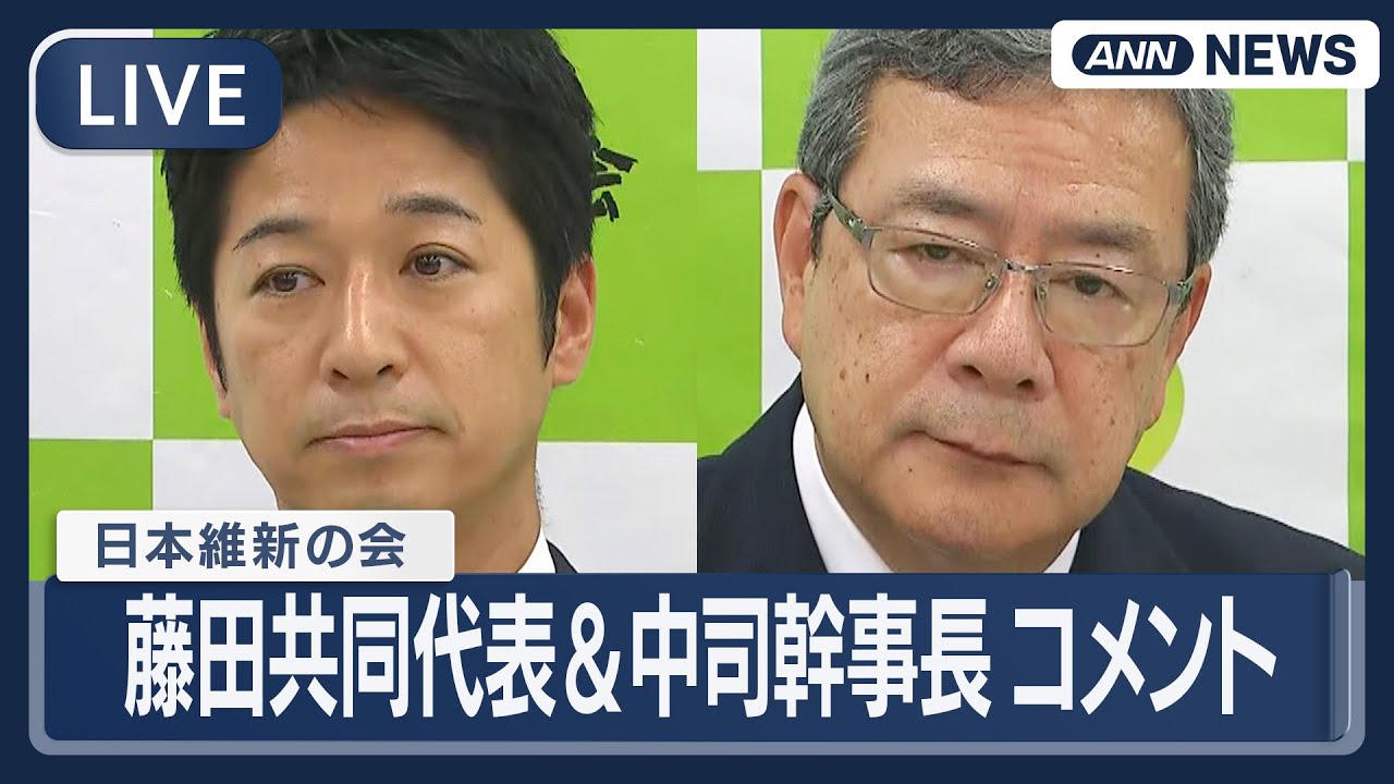 #ANNnews 【ライブ】日本維新の会・藤田共同代表、中司幹事長コメント 常任役員会の終了後【LIVE】(2025年10月19日) ANN/テレ朝