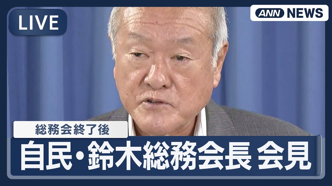 #ANNnews 【ライブ】自民党・鈴木総務会長会見 総務会終了後 フルスペック総裁選を開催実施へ【LIVE】(2025年9月9日) ANN/テレ朝