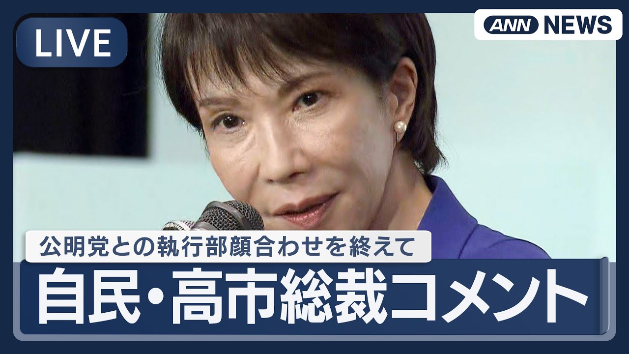 #ANNnews 【ライブ】自民党・高市早苗新総裁コメント 公明党との執行部顔合わせを終えて【LIVE】(2025年10月7日) ANN/テレ朝