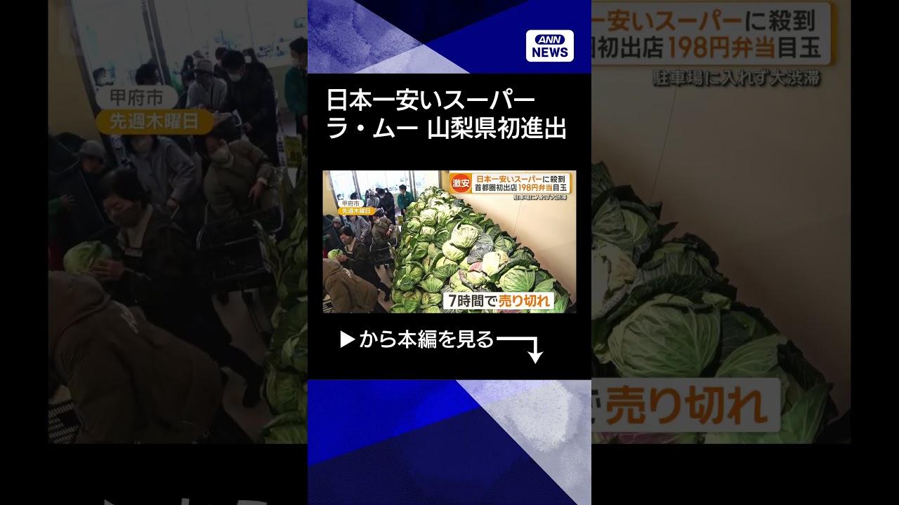 #ANNnews 【ラ・ムー】「日本一安いスーパー」山梨県に初進出 看板商品は198円弁当 開店前に200人行列【知ってもっと】【グッド!モーニング】(2026年3月24日) #shorts