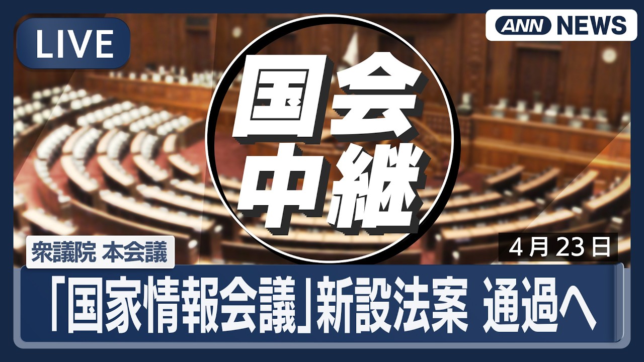 #ANNnews 【国会ライブ】衆議院 本会議 「国家情報会議」新設法案 通過へ【LIVE】(2026年4月23日) ANN/テレ朝