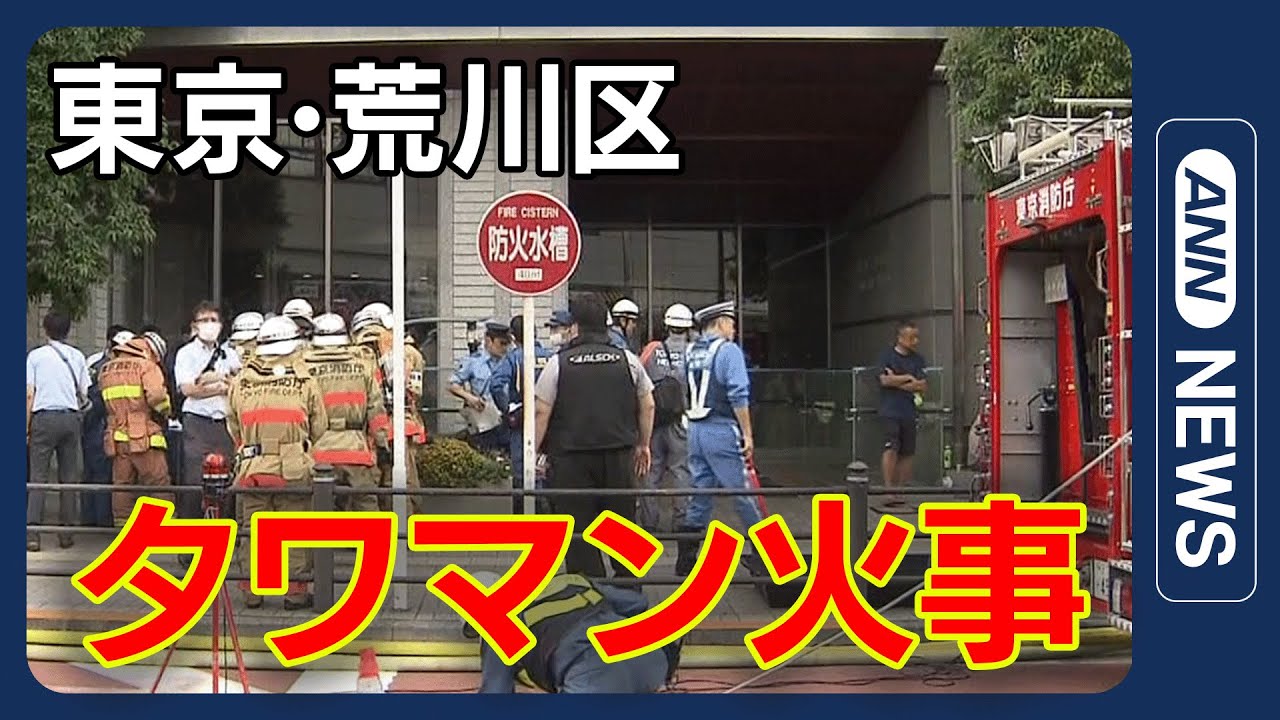 #ANNnews 【現場映像】東京・荒川区のタワマンで火事 70代女性が心肺停止で病院に搬送 (2025年8月28日) ANN/テレ朝