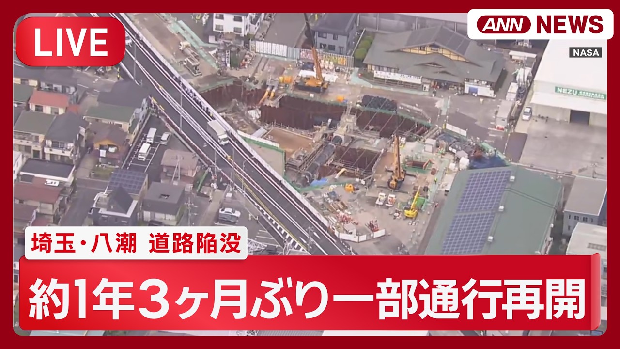#ANNnews 【空撮ライブ】八潮陥没事故 約1年3カ月ぶりに現場の片側1車線が通行可能に 埼玉・八潮市 ANN/テレ朝【LIVE】