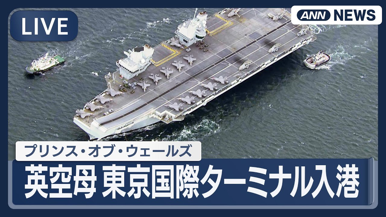 #ANNnews 【空撮ライブ】英空母プリンス・オブ・ウェールズが東京国際ターミナルに入港【LIVE】(2025年8月28日) ANN/テレ朝