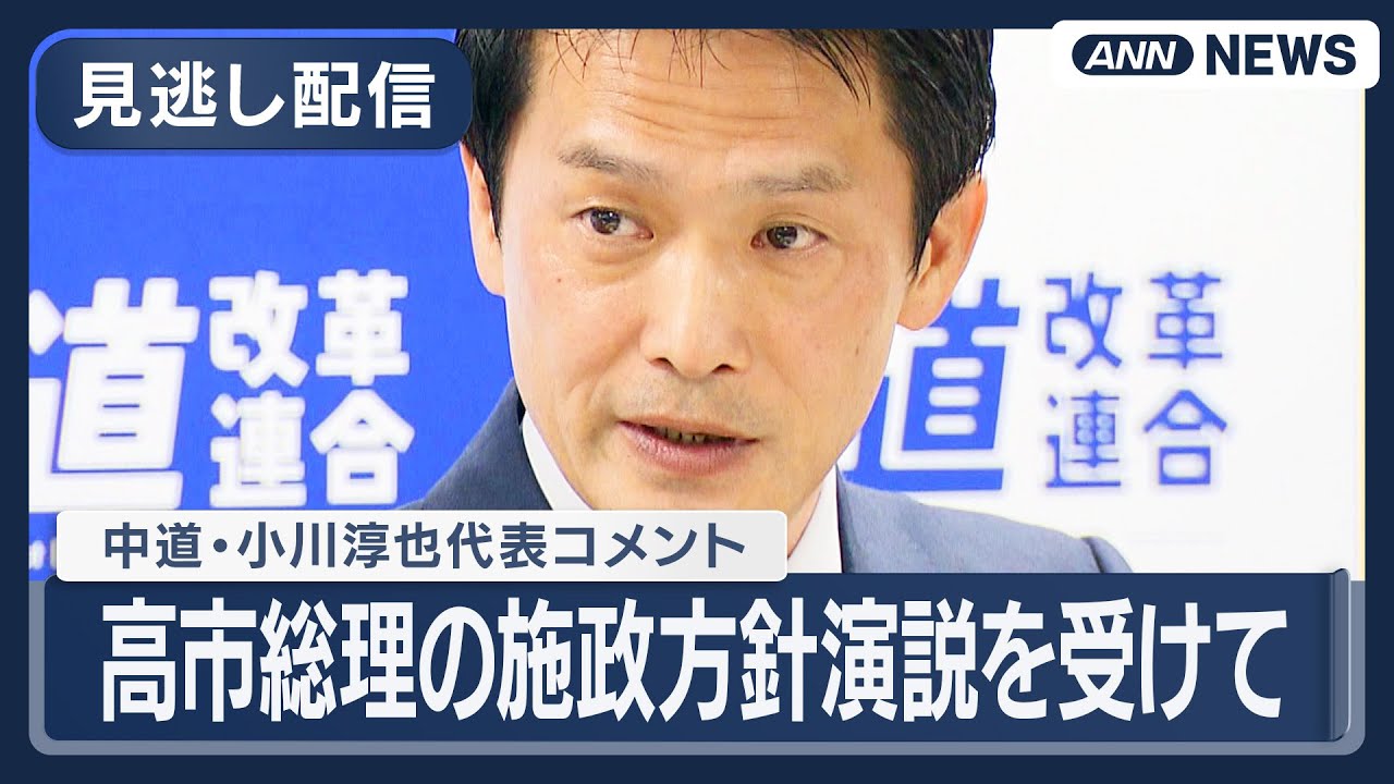 【見逃し配信】中道改革・小川代表コメント|高市総理の施政方針演説を受けて【ノーカット】(2026年2月20日) ANN/テレ朝 LIVE