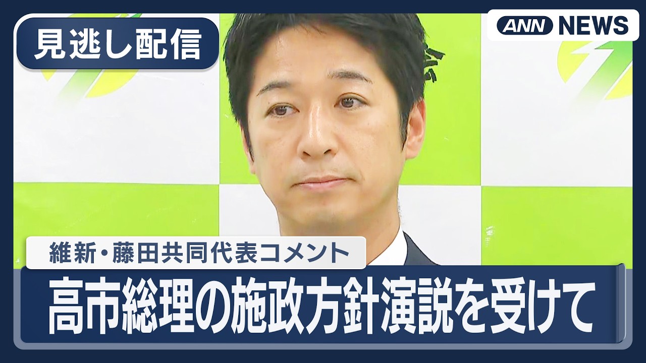 #ANNnews 【見逃し配信】維新・藤田共同代表コメント|高市総理の施政方針演説を受けて【ノーカット】(2026年2月20日) ANN/テレ朝 LIVE