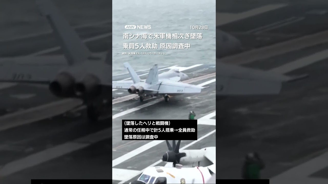 #ANNnews 南シナ海で米軍ヘリと戦闘機が相次ぎ墜落 乗員5人全員救助 原因は調査中(2025年10月27日放送)#shorts