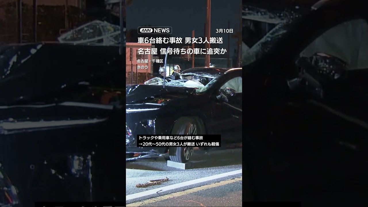 #ANNnews 車6台絡む事故 男女3人搬送 信号待ちの車に追突か 名古屋 #shorts
