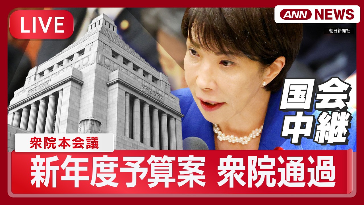 #ANNnews 20:00から【国会中継ライブ】衆議院・本会議|新年度予算案 採決強行へ 衆議院通過の見通し【LIVE】(2026年3月13日) ANN/テレ朝