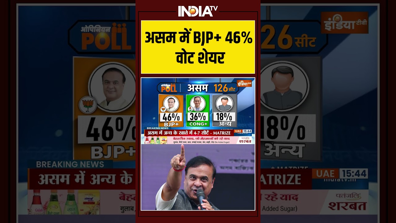 #assamelectionopinionpoll असम में BJP+ 46% वोट शेयर #nda #assamelections #IndiaTV