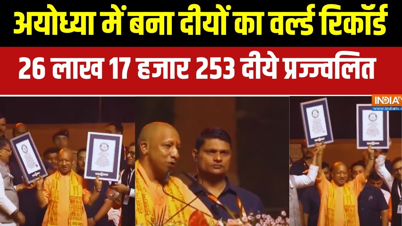 इस वक्त की बड़ी खबर…अयोध्या में दीपोत्सव पर वर्ल्ड रिकॉर्ड बन गया है…26 लाख 17 हजार 253 दीये प्रज्ज्वलित किए गए हैं…इसका सर्टिफिकेट भी मिल गया है…सीएम योगी इस वक्त अयोध्या में सरयू के तट पर कार्यक्रम में बोल रहे हैं…