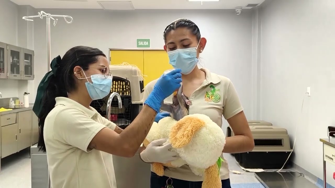 A baby patas monkey at a Mexican zoo has been given a stuffed teddy bear for comfort after its mother was unable to care for it, zoo officials said.