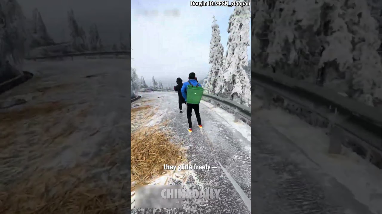 Who says #skating requires professional equipment? Locals in #Guizhou province have unlocked exclusive winter fun with just two pieces of bamboo! Treading on the bamboo slices, they glide freely — no complicated setups, just smooth, seamless sliding. #winter #FunChina #fun