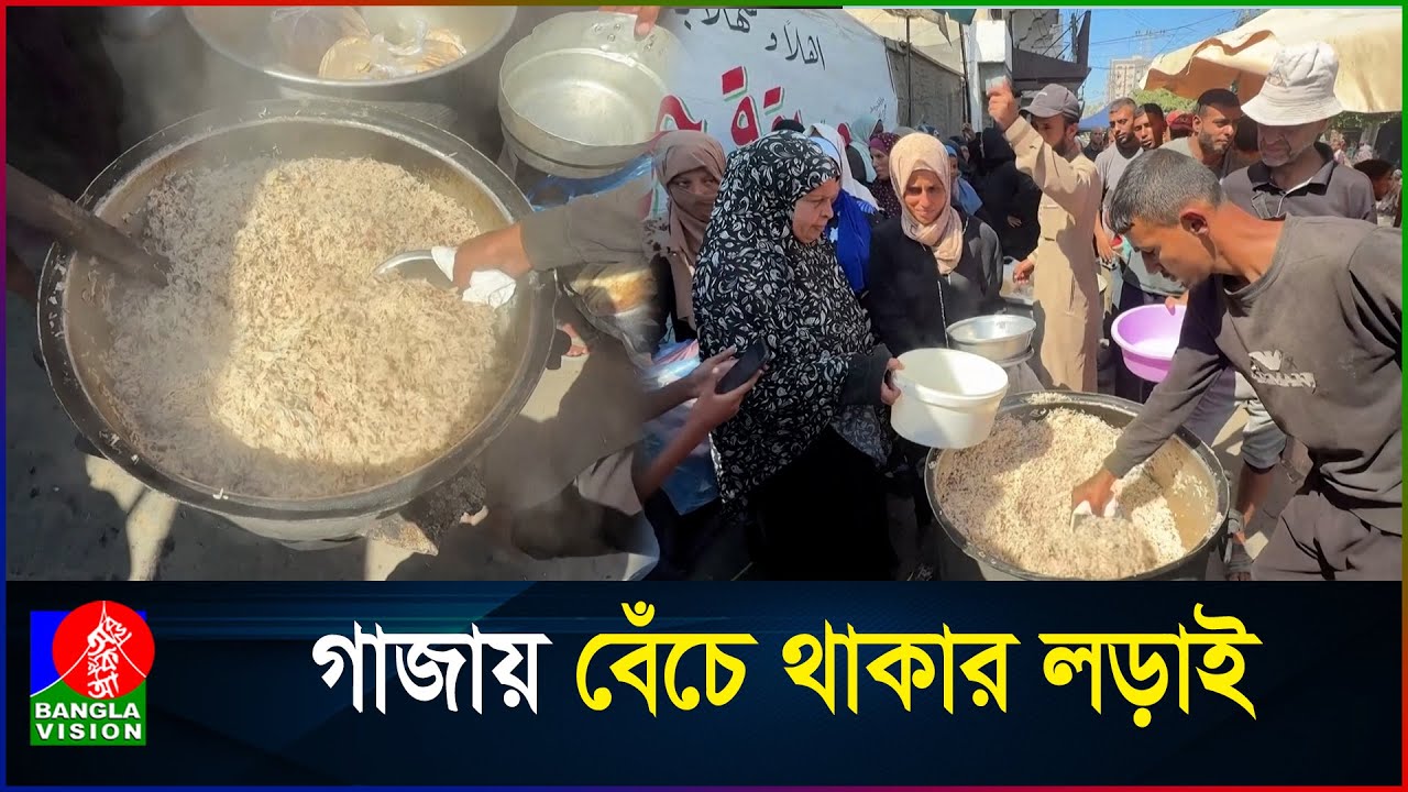 #BanglaVisionNEWS গাজায় ক্ষুধার্ত মানুষের ভিড়, একটু খাবারের জন্য হাহাকার | Gaza