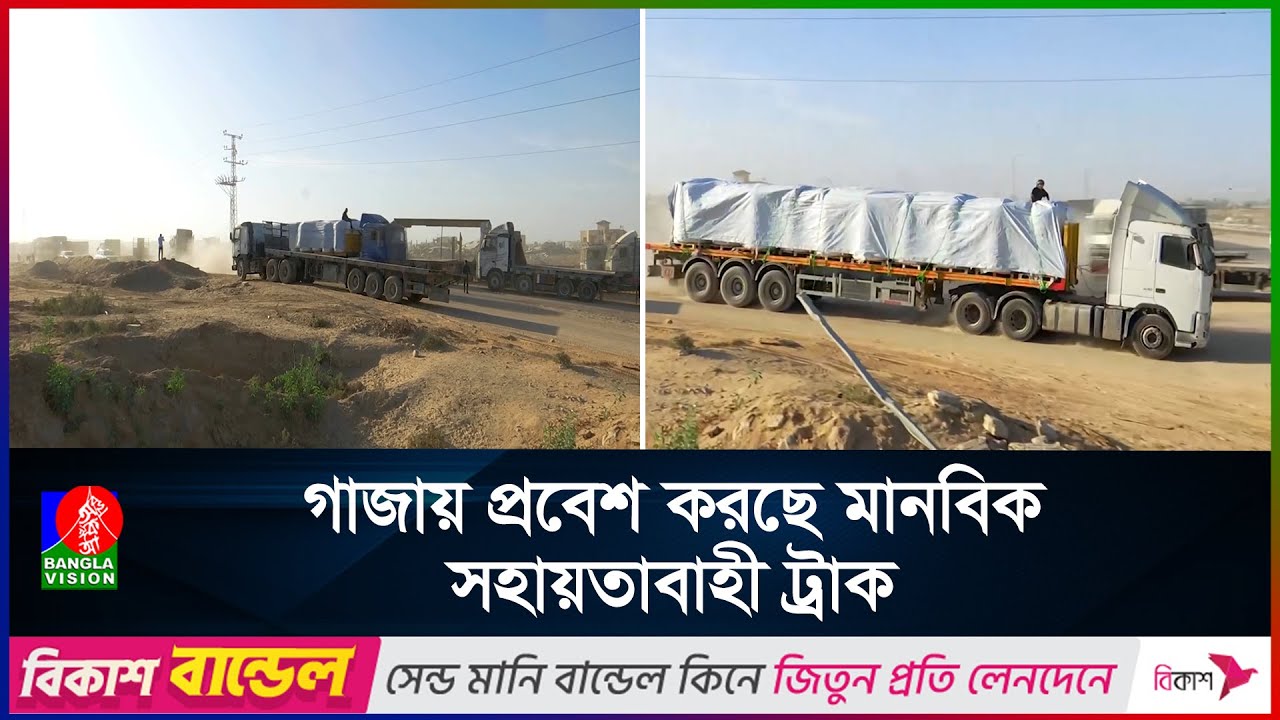 #BanglaVisionNEWS গাজায় প্রবেশ করছে মানবিক সহায়তাবাহী ট্রাক