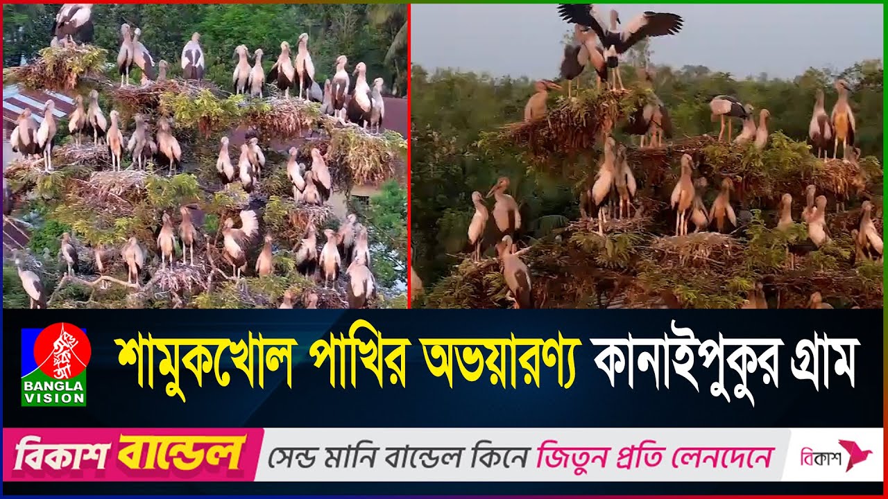 #BanglaVisionNEWS জয়পুরহাটের কানাইপুকুর গ্রামে বিরল ‘শামুকখোল’ পাখির আগমন