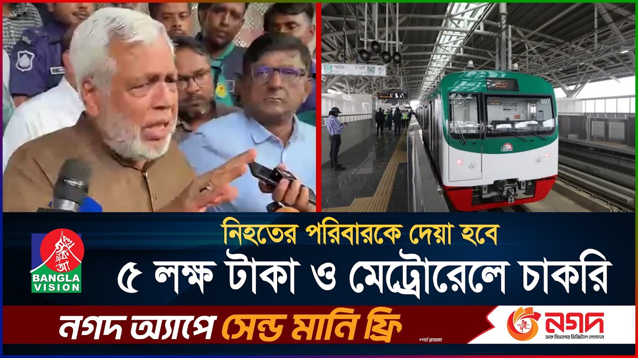 নি*হতের পরিবারকে দেয়া হবে ৫ লক্ষ টাকা ও মেট্রোরেলে চাকরি | Metro Rail | Dhaka | BanglaVision