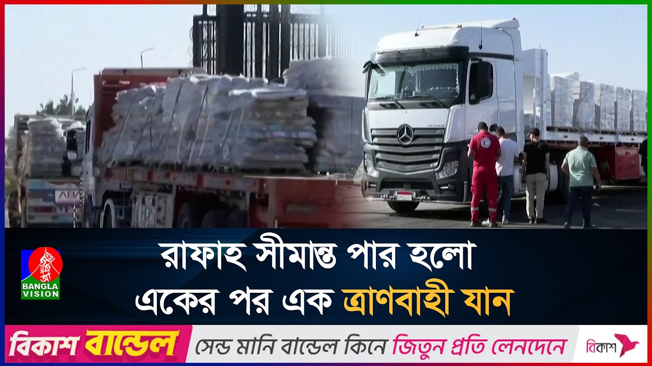 #BanglaVisionNEWS যু/দ্ধবিরতির মধ্যেই গাজায় পৌঁছাতে শুরু করেছে মানবিক সহায়তা