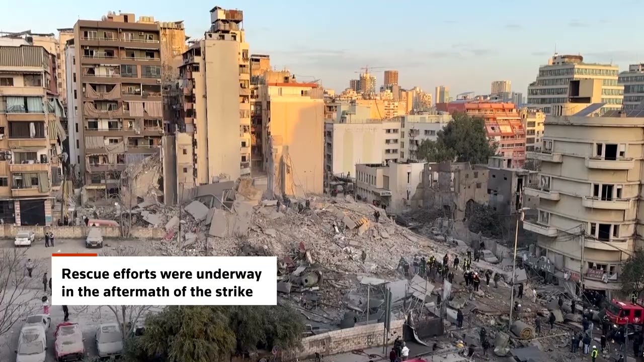 Eyewitness video captured the moment an Israeli airstrike hit a building in central Beirut, causing it to collapse. Rescue efforts were underway after the strike.