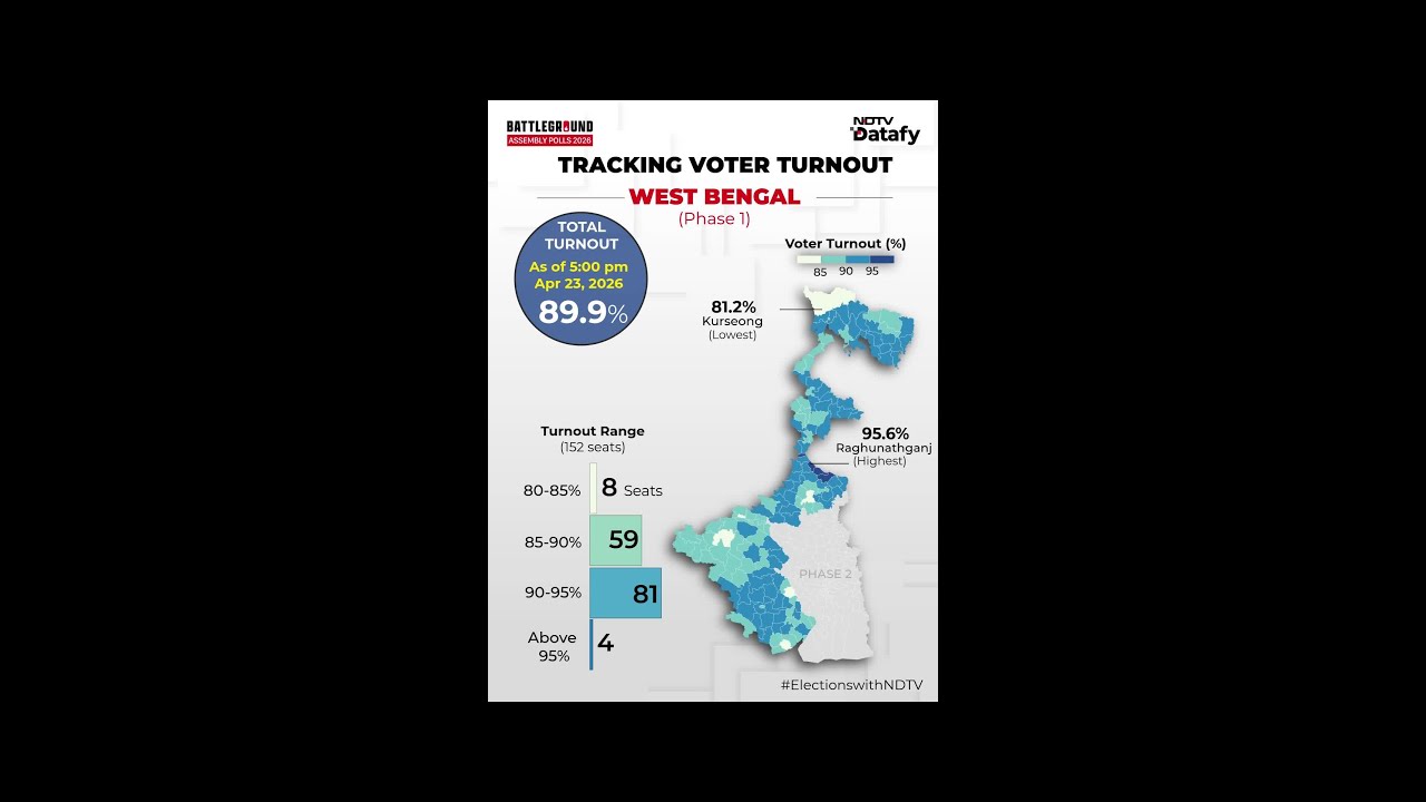 #ElectionsWithNDTV #WestBengalElection #BengalPolls #BengalElection2026 #2026Election #Election2026 #BengalPhase1Voting #WBPhase1Voting #Phase1Voting2026 #MamataBanerjee #TMCBengalVoting #BJPBengalVoting #BJPvsTMC