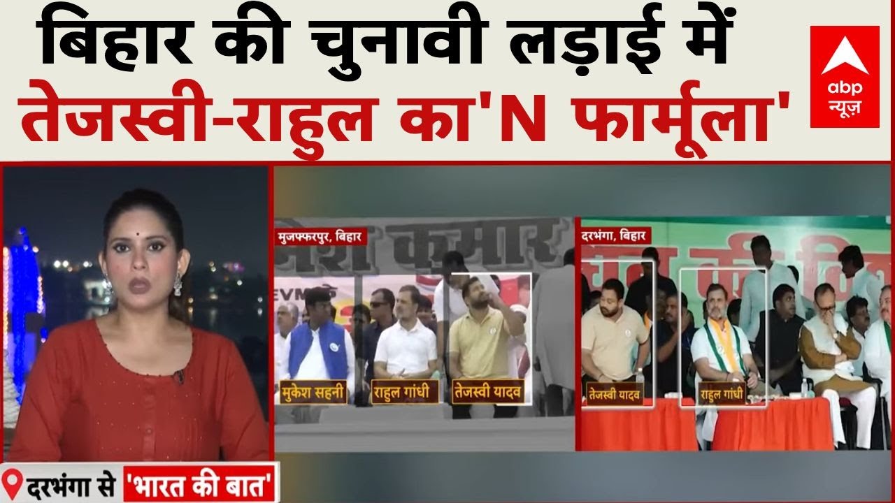 बिहार स्पेशल एडिशन देख रहे हैं…तो चलिए दिन की हर बड़ी खबर के साथ..शुरू करते हैं ‘भारत की बात’…शुरुआत उन खबरों से जिन पर विस्तार से करेंगे चर्चा…बिहार में महागठबंधन का ‘N फॉर्मूला’ क्या है…आज हमारी कवर स्टोरी में ये EXCLUSIVE विश्लेषण आपके लिए होगा…दिखाएंगे कैसे चुनावी रण तेजस्वी वर्सेज नीतीश कुमार और मोदी वर्सेज राहुल गांधी हो गया है….