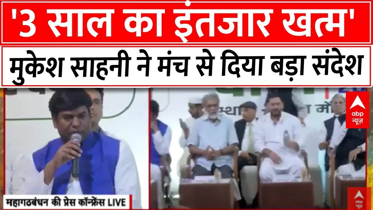 ‘भाजपा को तोड़े बिना चैन नहीं लेंगे’, Mukesh Sahani की हुंकार…बिहार में महागठबंधन की खींचतान आज खत्म होने की संभावना है। बुधवार को अशोक गहलोत ने तेजस्वी यादव और लालू प्रसाद यादव से मुलाकात की थी। सीटों को लेकर चल रही लंबी बहस और मतभेदों के बाद यह प्रेस कॉन्फ़्रेंस गठबंधन की स्थिति स्पष्ट करने और रणनीति तय करने के लिहाज से अहम मानी जा रही है। सभी की निगाहें इस अहम प्रेस कॉन्फ़्रेंस पर टिकी हुई हैं।