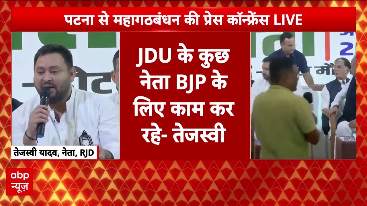 Tejashwi Yadav ने JDU नेताओं पर कैसा तंज, कहा ‘ये सब BJP के लिए काम करते हैं’बिहार में महागठबंधन की खींचतान आज खत्म होने की संभावना है। बुधवार को अशोक गहलोत ने तेजस्वी यादव और लालू प्रसाद यादव से मुलाकात की थी। सीटों को लेकर चल रही लंबी बहस और मतभेदों के बाद यह प्रेस कॉन्फ़्रेंस गठबंधन की स्थिति स्पष्ट करने और रणनीति तय करने के लिहाज से अहम मानी जा रही है। सभी की निगाहें इस अहम प्रेस कॉन्फ़्रेंस पर टिकी हुई हैं।