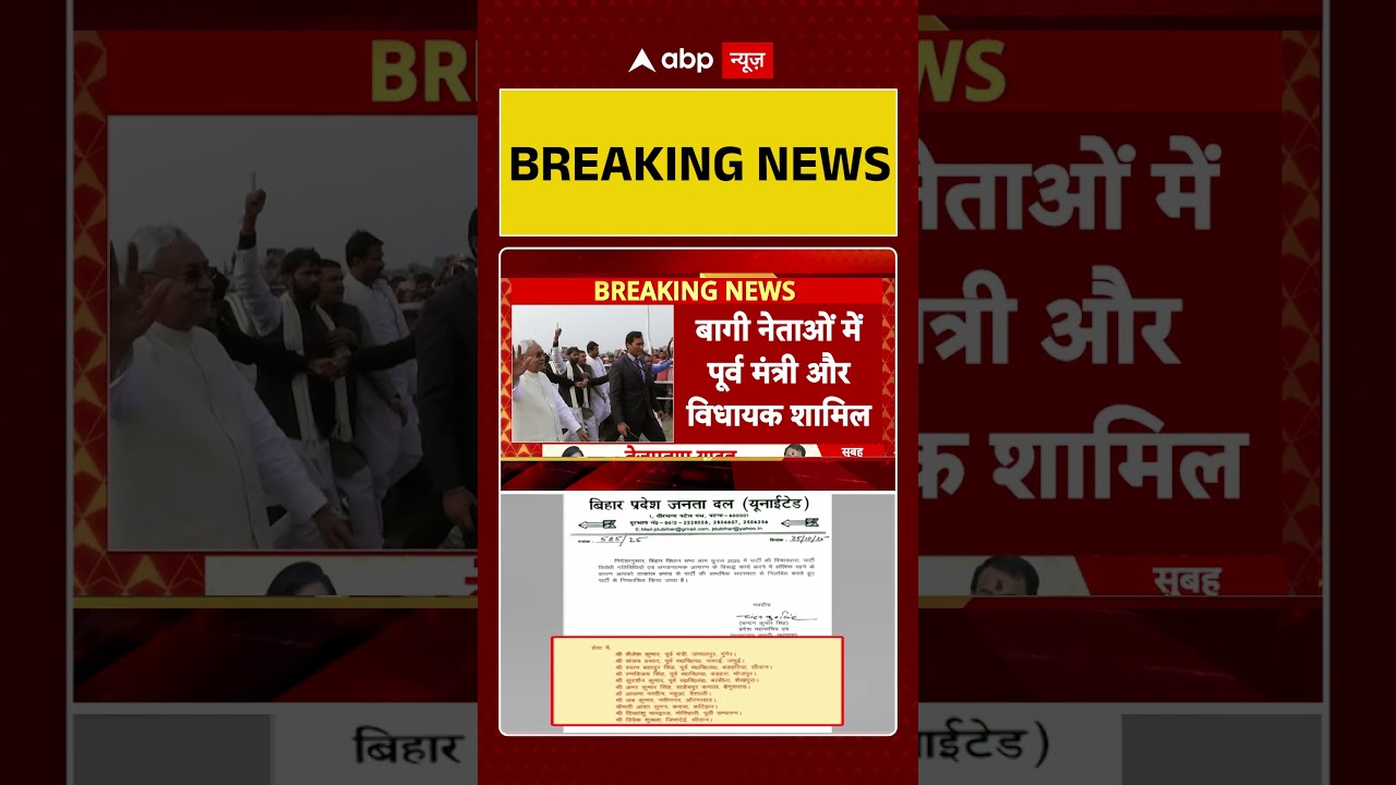 बिहार विधानसभा चुनाव के बीच जेडीयू ने बड़ा एक्शन लेते हुए 11 नेताओं को पार्टी से बाहर का रास्ता दिखा दिया है. इसमें पूर्व मंत्री भी शामिल है.पार्टी विरोधी गतिविधियों में शामिल होने के कारण ये कार्रवाई की गई. इसमें पूर्व मंत्री पूर्व MLC से लेकर पूर्व विधायक तक शामिल हैं …जिन नेताओं को पार्टी से निकाला गया है उनमें पूर्व मंत्री शैलेश कुमार, पूर्व MLC संजय प्रसाद, पूर्व MLA श्याम बहादुर सिंह, पूर्व MLC रणविजय सिंह, पूर्व विधायक सुदर्शन कुमार समेत 11 नेता शामिल हैं. #Mahagathbandhan #BiharPolitics #LaluYadav #AIMIM #Congress #RJD #CM #DeputyCM #abpnews #abpnewslive #abpnewslivetv