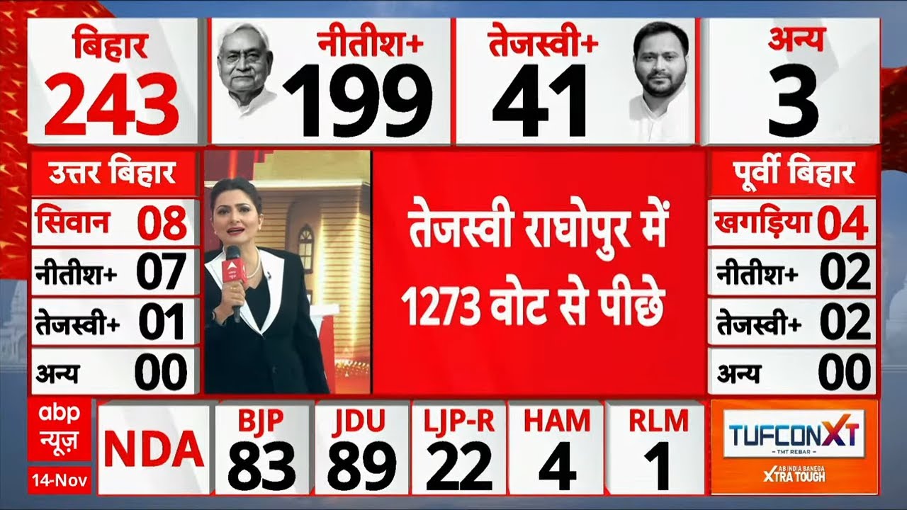 #BiharElection2025 #BiharResultsLive #ABPNewsLive #VotingDay #BiharVotes #ElectionResults2025 #BiharElectionUpdate #NDAvsRJD #BiharPolitics #ElectionBreaking #BiharAssemblyElection #BiharNews #ABPNewsHindi #LiveCounting #PoliticalUpdates #BreakingNewsHindi #BiharLatest #BiharLiveCoverage #RJD #NDA #BiharVoteCounting #Election2025Live #GroundReport #BiharMandate #BiharBattle2025 #ElectionTrends #SeatWiseResults #IndiaPolitics #HindiNewsLive #CountingDay