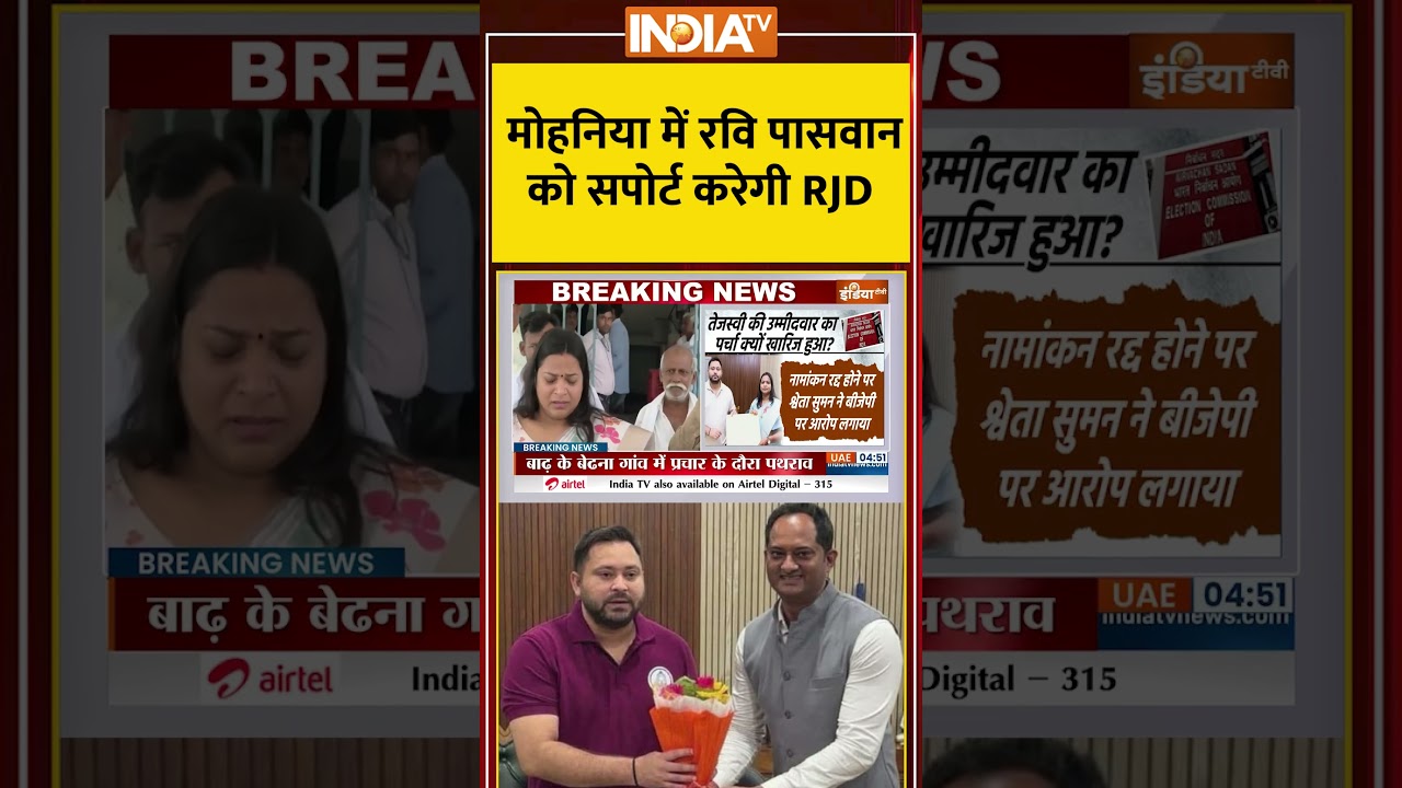 #biharelection2025 #mohania में रवि पासवान को सपोर्ट करेगी RJD #tejashwiyadav #indiatv #shorts #IndiaTV