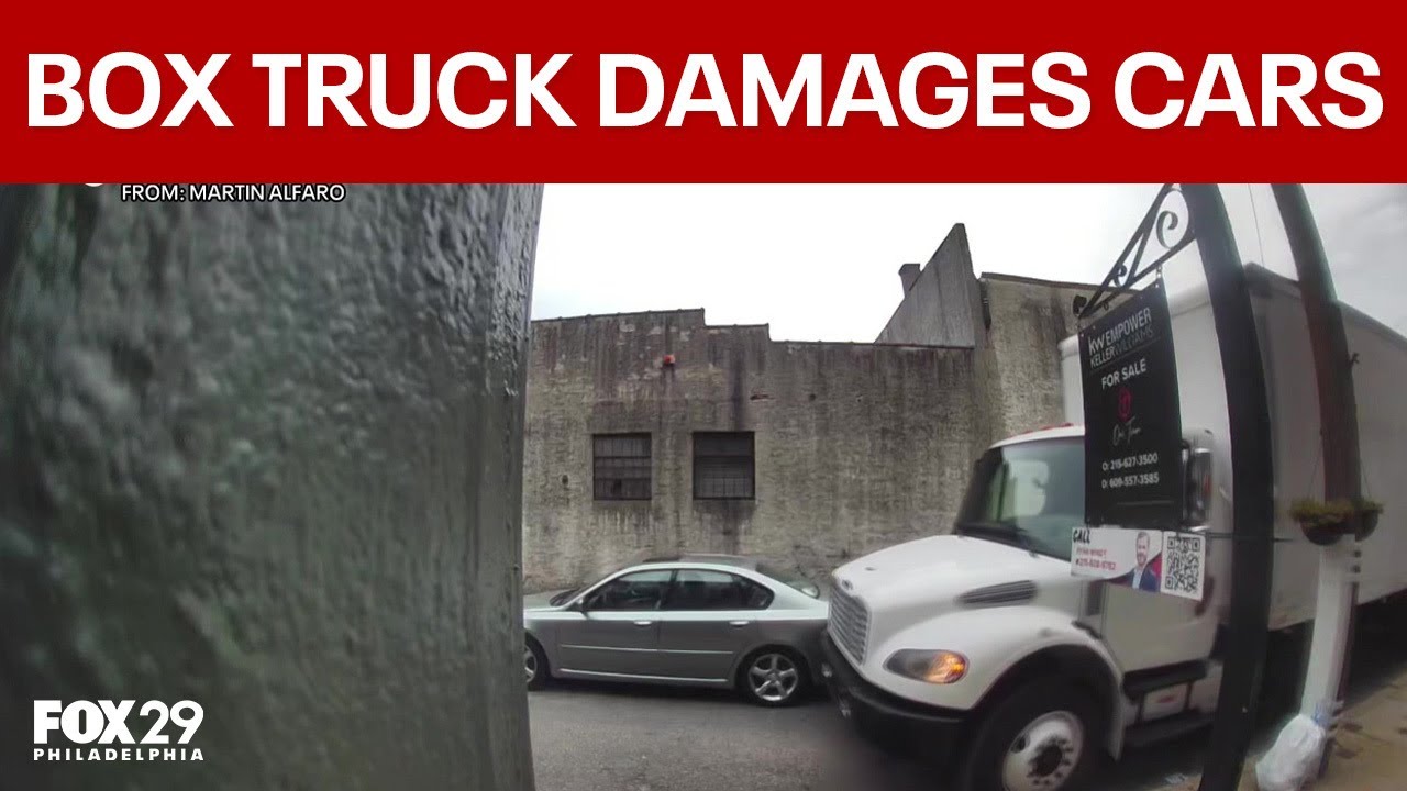 Box truck damages cars on narrow South Philly street; driver flees #FOX29Philadelphia