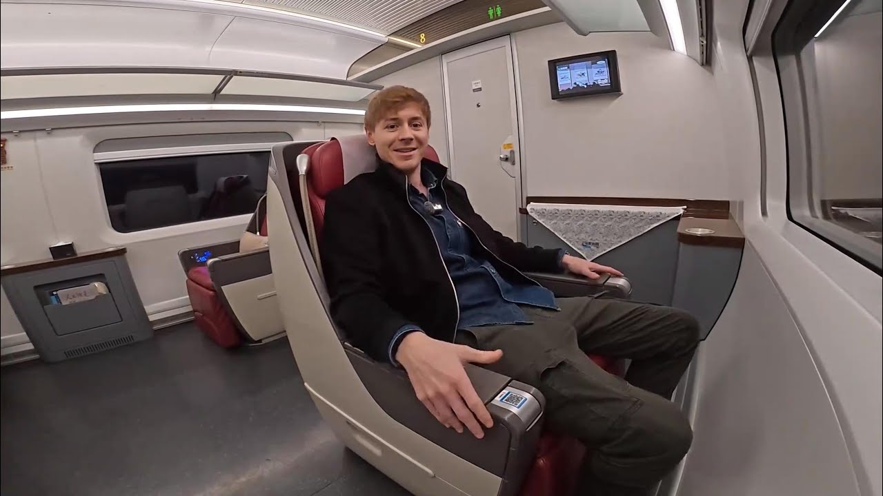 British vlogger Jason takes a ride in business class on a high-speed train in China, exploring its amenities. #HighSpeedRail