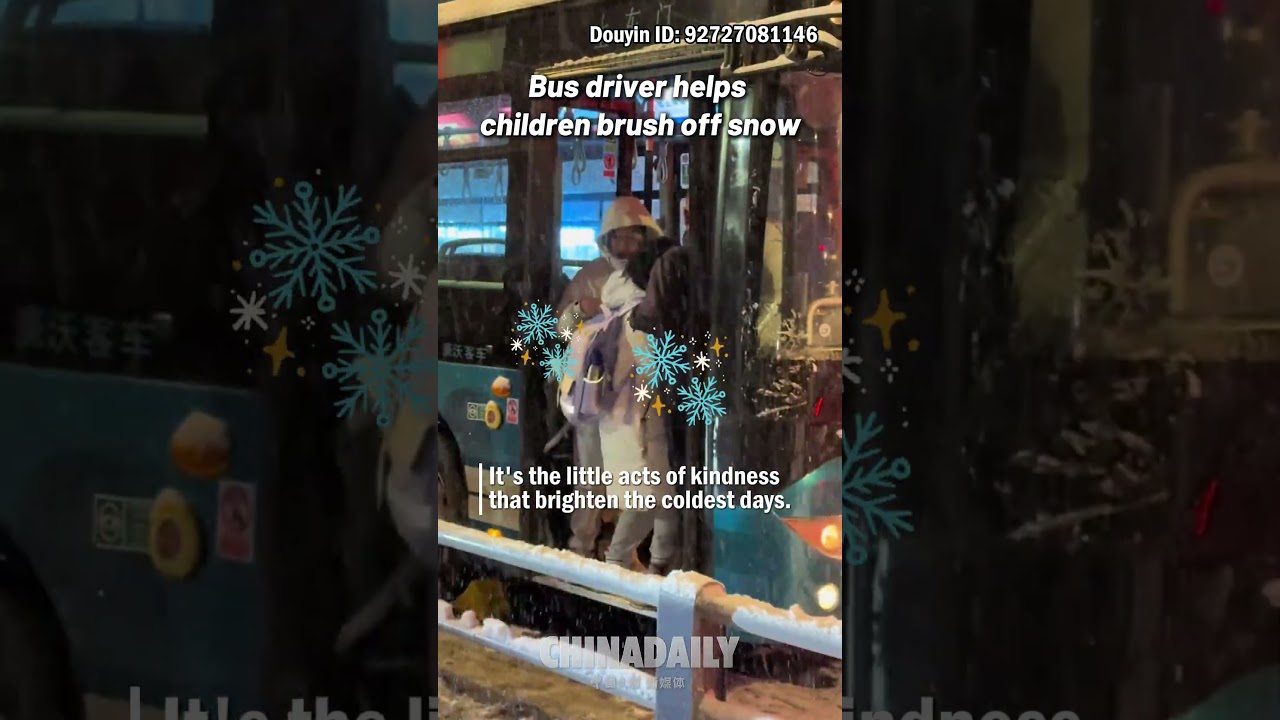 Bus driver helps children brush off snow #ChinaDaily #中国日报