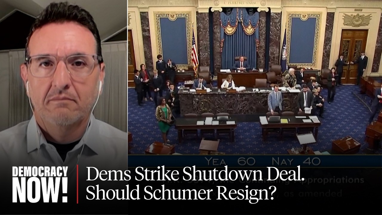 We speak to David Dayen about what could be the end to the longest government shutdown in U.S. history, after seven Democratic Senators and one independent struck a deal with Republicans to pass a short-term government funding bill. “Why would you end this?” asks Dayen, echoing many in the Democratic coalition who believe the deal was a poor strategic move for the anti-Trump opposition. Calls are now growing for Senate Minority Leader Chuck Schumer to step down. “Donald Trump and the Republicans were being blamed for all of this chaos…and yet, days later this this group of Democrats with the tacit support of Chuck Schumer decide that they’re going to end this and cave.”