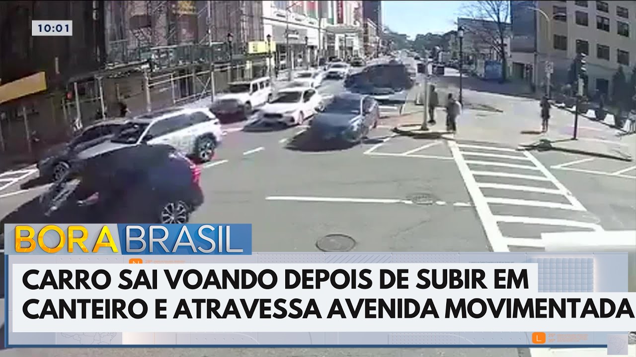 Carro voa por cima de cruzamento e atinge andaime | Bora Brasil