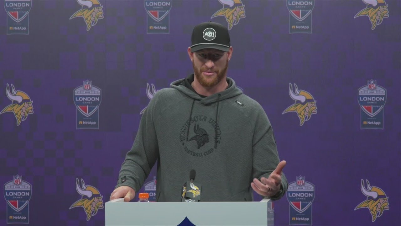After getting hurt during the first half, Vikings quarterback Carson Wentz recalled the comeback win over Cleveland in London.