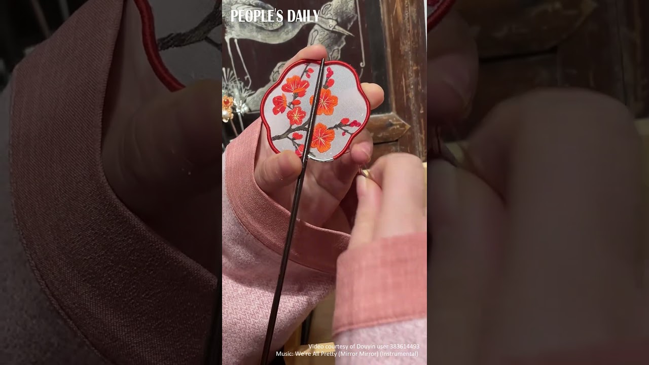 Check out these mini fans crafted by a girl from Jiangsu, featuring exquisite embroidered designs #PeoplesDailyChina #人民日报