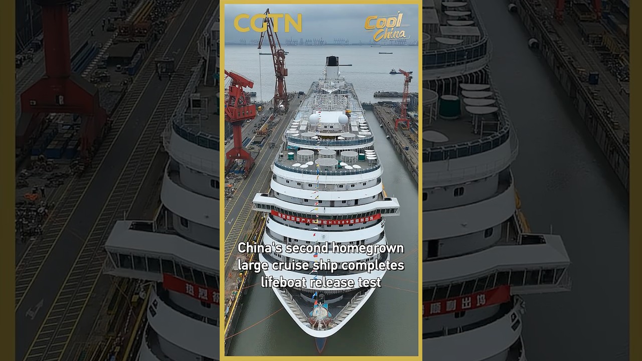 China’s second homegrown large cruise ship completes lifeboat release test #coolchina #CGTN