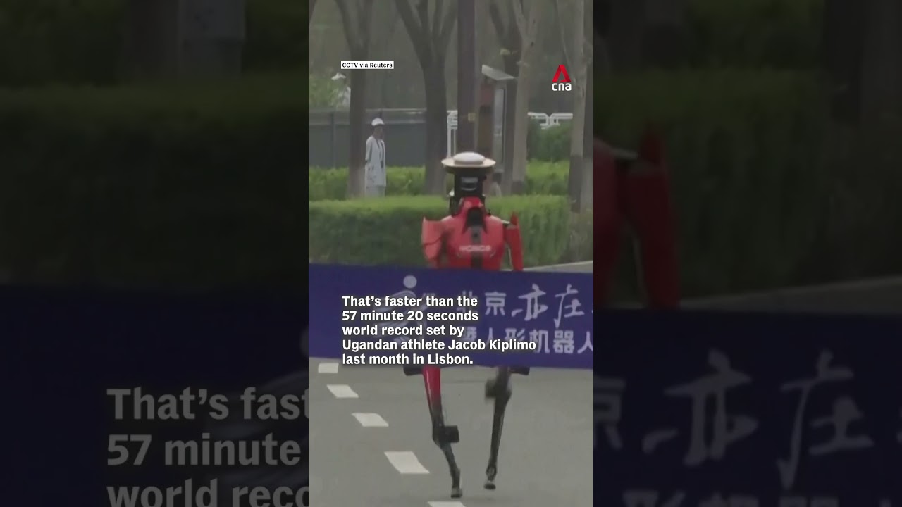 🤖🏃 Robots in China outran their human counterparts in a half-marathon in Beijing on Sunday (Apr 19). The winning “Lightning” bot, developed by Honor, completed the race in 50 minutes 26 seconds — beating the world record set by Ugandan athlete Jacob Kiplimo by seven minutes. #chinanews #china #robot