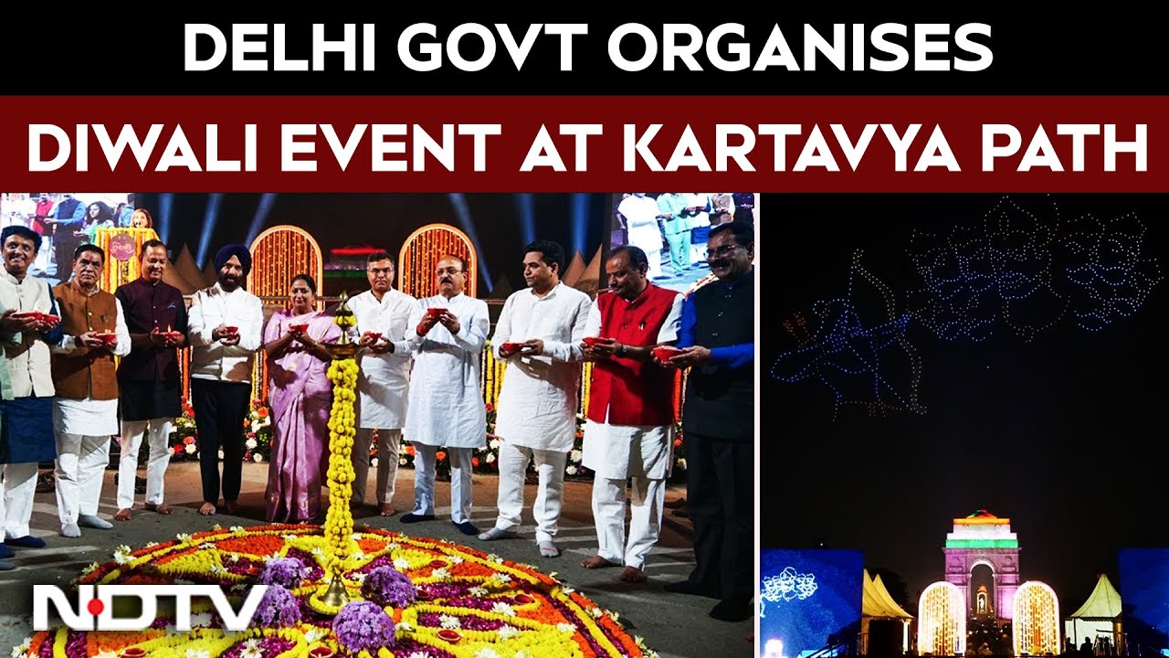 Drone show at an illuminated Kartavya Path, as the Government of Delhi organizes a Diwali event for the common public. CM Rekha Gupta and ministers of her cabinet are also here.