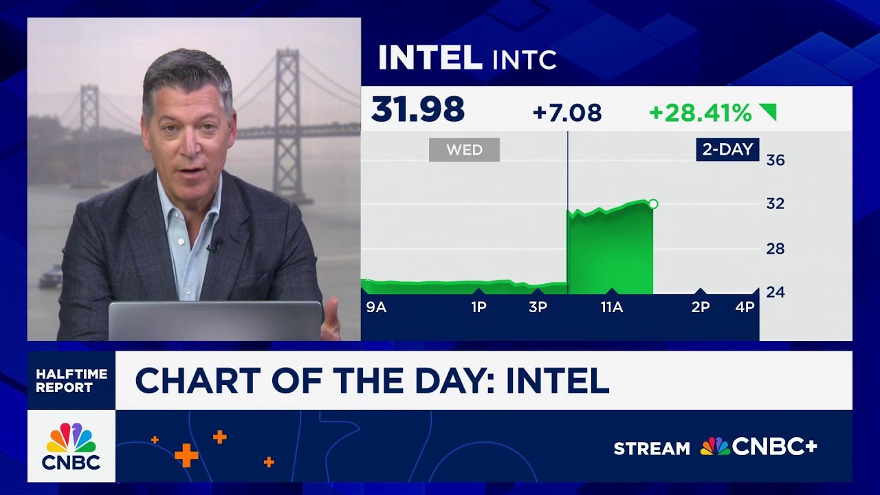 CNBC’s “Halftime Report” investment committee discusses shares of Intel after the announcement that Nvidia is taking a $5 billion stake in the semiconductor company as part of a deal to co-develop data centers and PC chips.