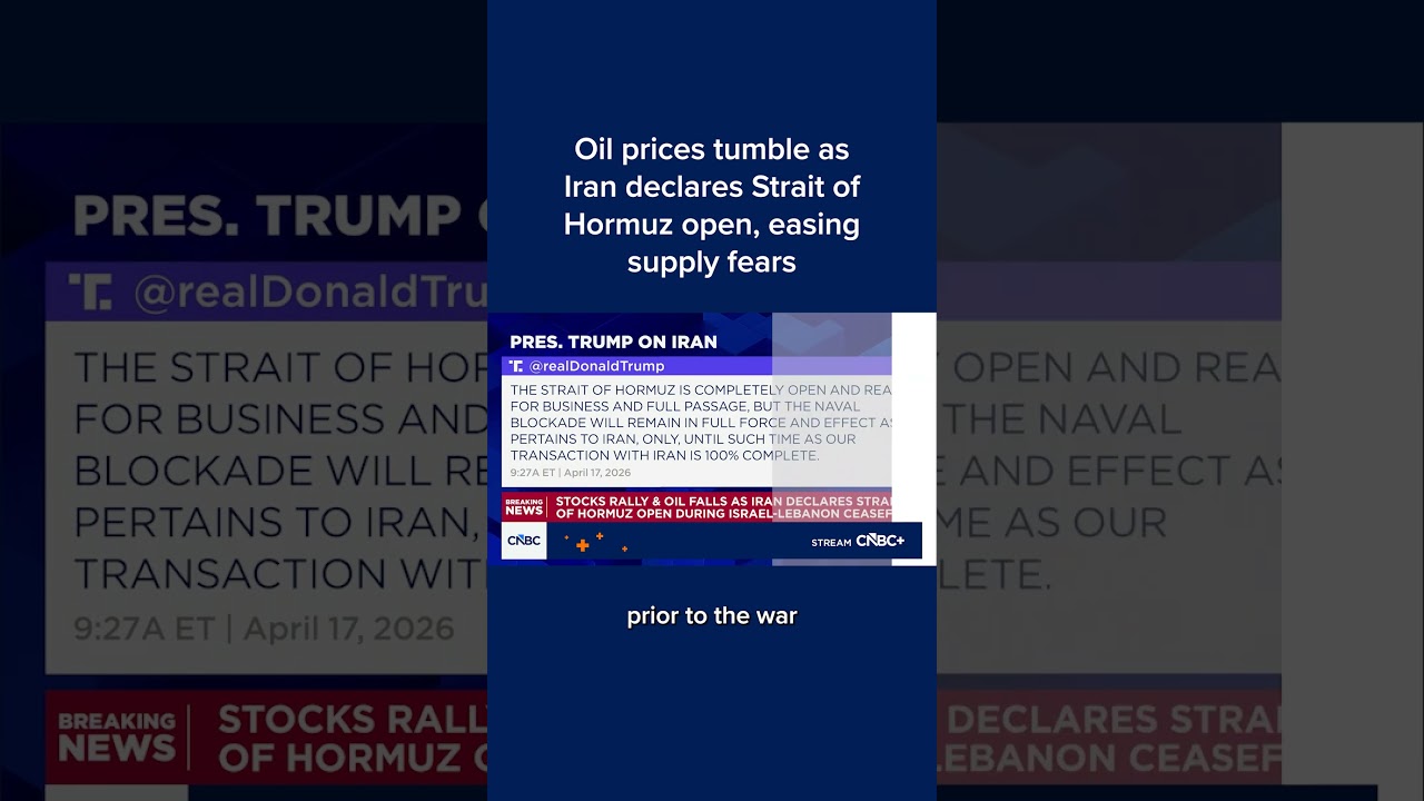 #CNBC Oil prices tumble as Iran declares Strait of Hormuz open, easing supply fears