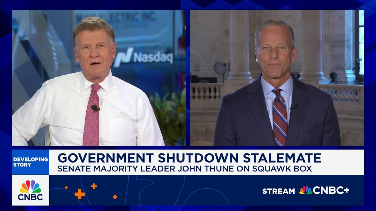 Senate Majority Leader Sen. John Thune (R-S.D.) joins ‘Squawk Box’ to discuss the latest developments in the ongoing federal government shutdown, whether Republicans can get enough Democratic support to pass the continuing resolution, fate of the premium tax credits, and more.