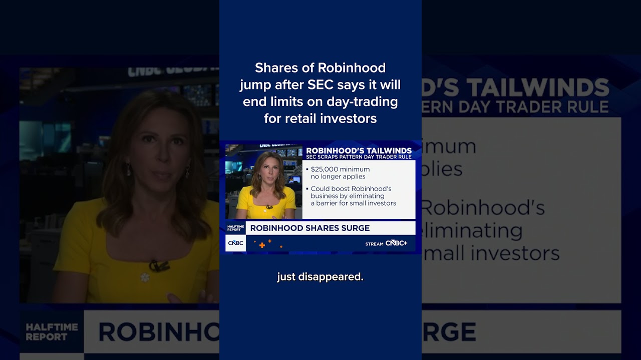 Shares of Robinhood jumped on news that the Securities and Exchange Commission will end limits on day-trading for smaller, retail investors.
