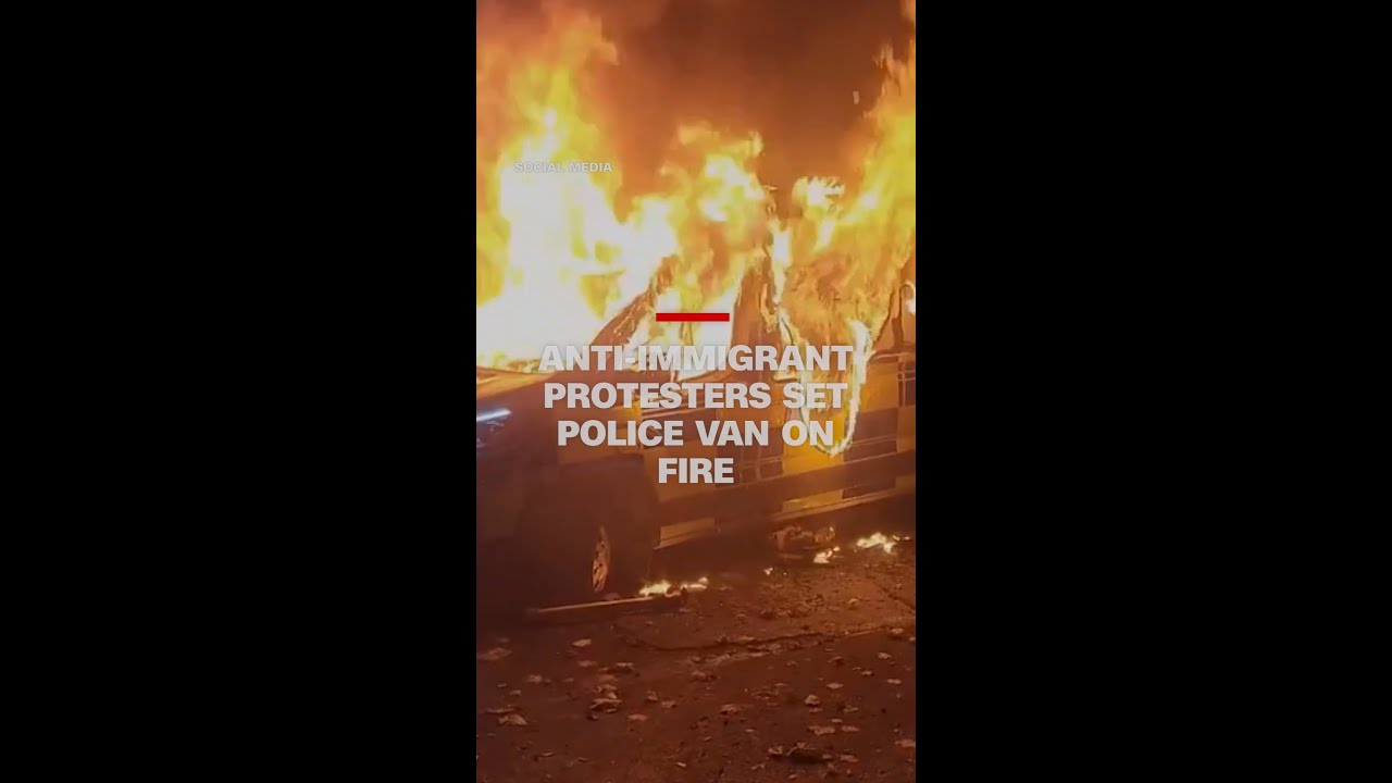 #CNN Anti-immigrant protesters set police van on fire