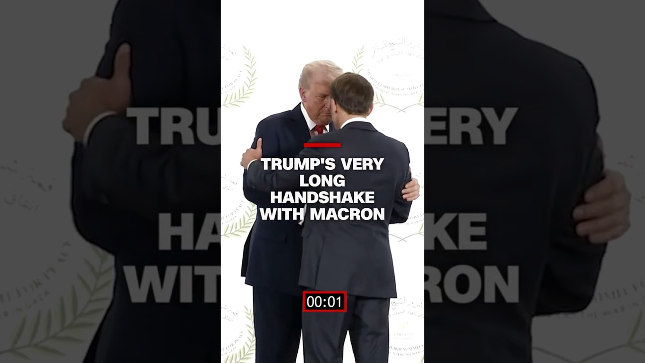 During a summit in Egypt about the future of Gaza, President Trump greeted French President Emmanuel Macron with an extended handshake that lasted 26 seconds.
